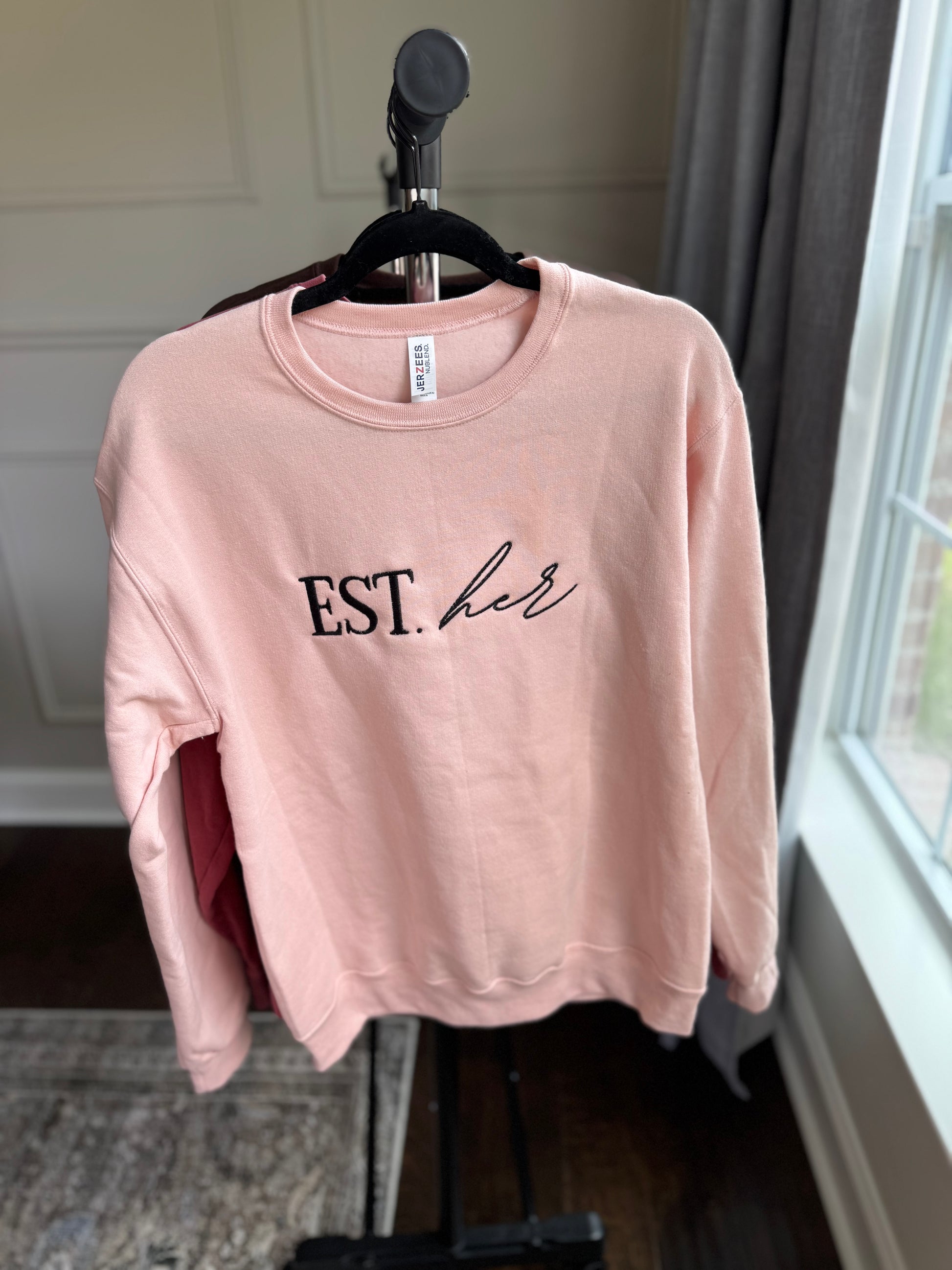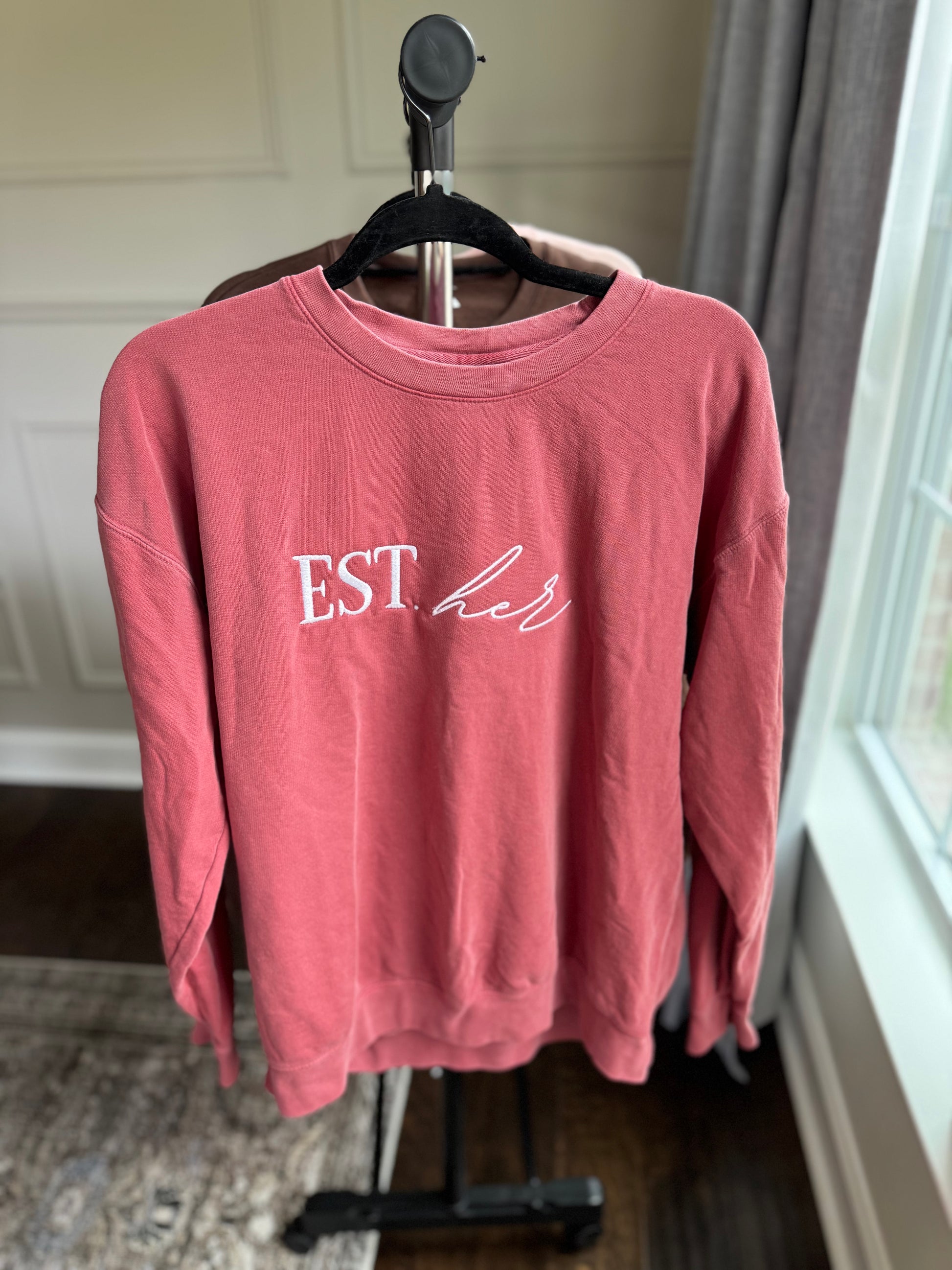 The sweatshirt of your dreams. The Esther logo stands for "Established by Her" because every woman is part of establishing this brand and Esther from the Bible, who was bold to share her faith.