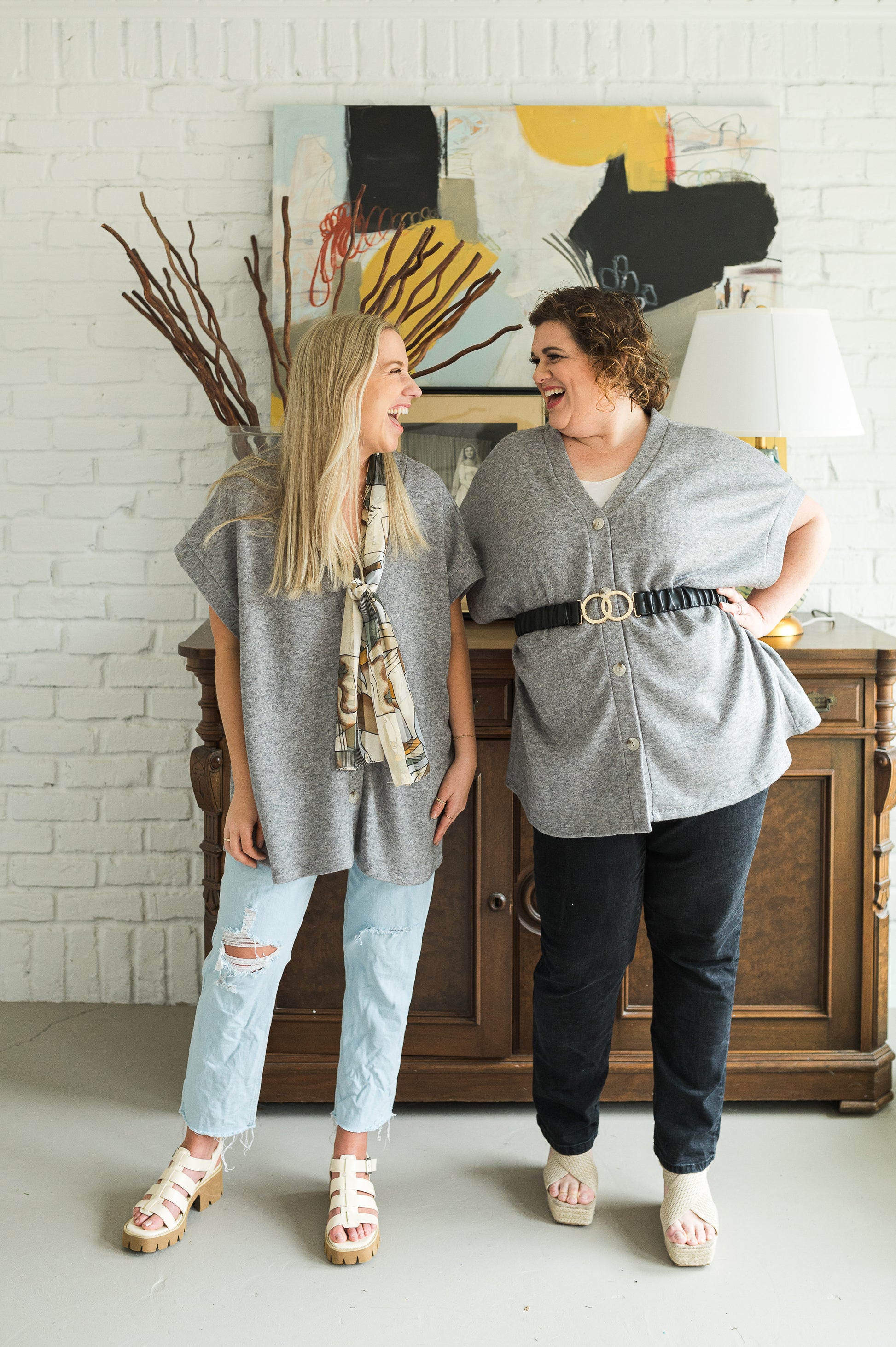 - Model is wearing a small and the other model is in a 1XL