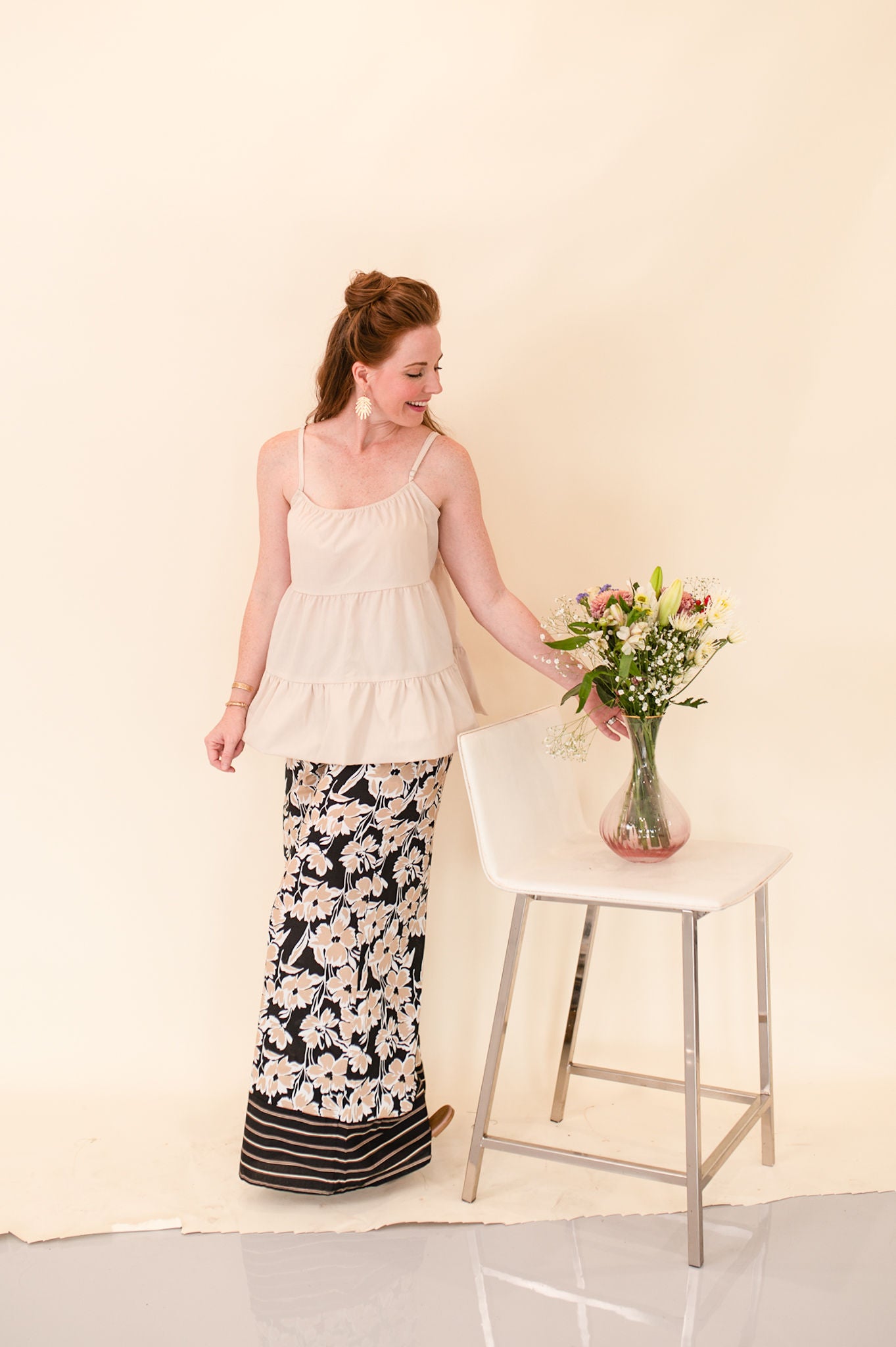 This top is so easy and flowy for the summer! Pair with a flowy skirt, some longer shorts or even distressed boyfriend denim.