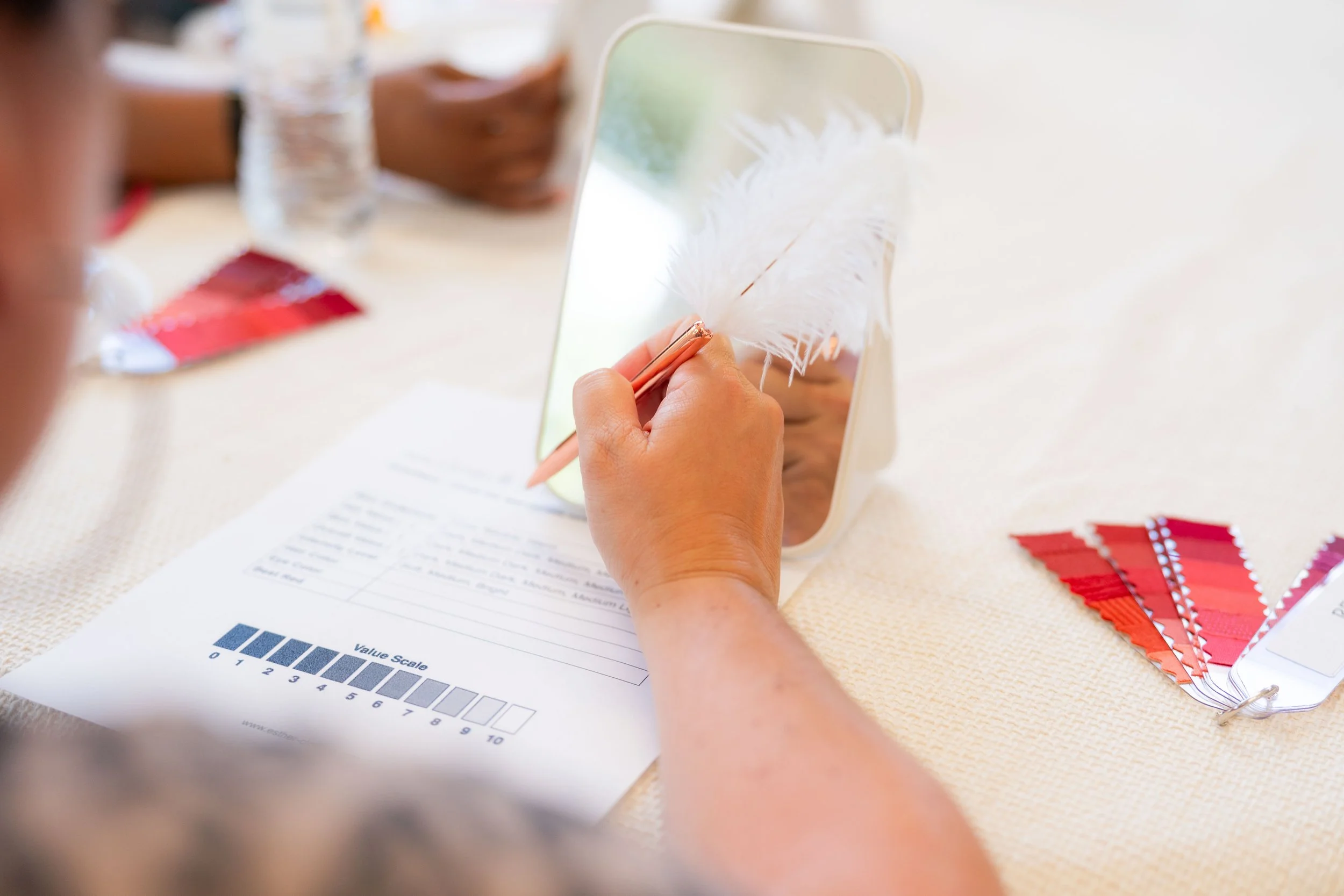 Gather your group and discover your best colors together. Mini Palettes offer a streamlined color analysis experience where each guest receives a personalized mini color fan with their most wearable, confidence-boosting shades.